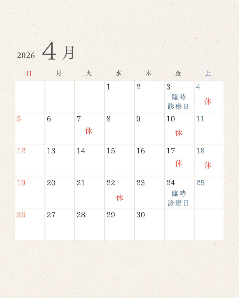 2026年4月診療日変更・追加のお知らせ